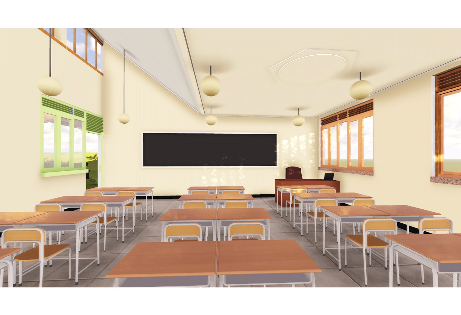 My role: 3D modelling and rendering, Architectural design of classroom block