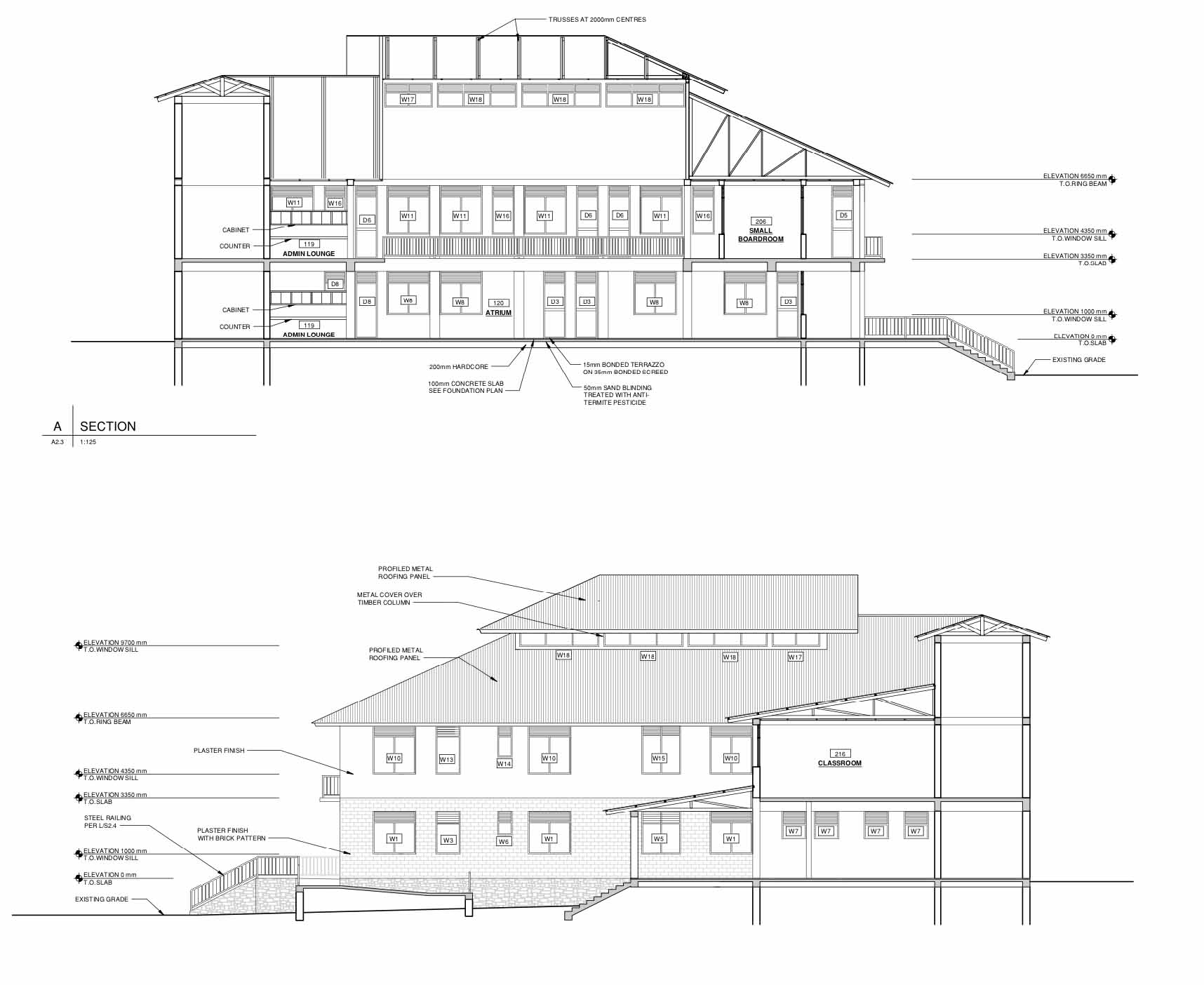 The CI-UCBC main academic building is designed to accommodate a 1200 seat Auditorium, classrooms for 500 students and Offices for the Christian Bilingual University of Congo (UCBC).